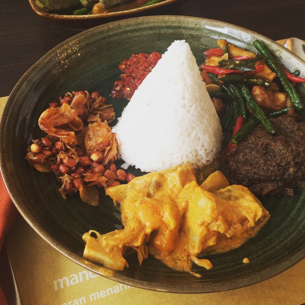 ナシ・サユール・メダンというスタイルのご飯料理にしました。メダンは地名で、サユールは野菜の意味です。これも味付けが独特で美味しい…☆