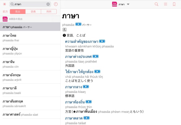 - アプリ辞書なのでタイ語&日本語での検索がとても楽