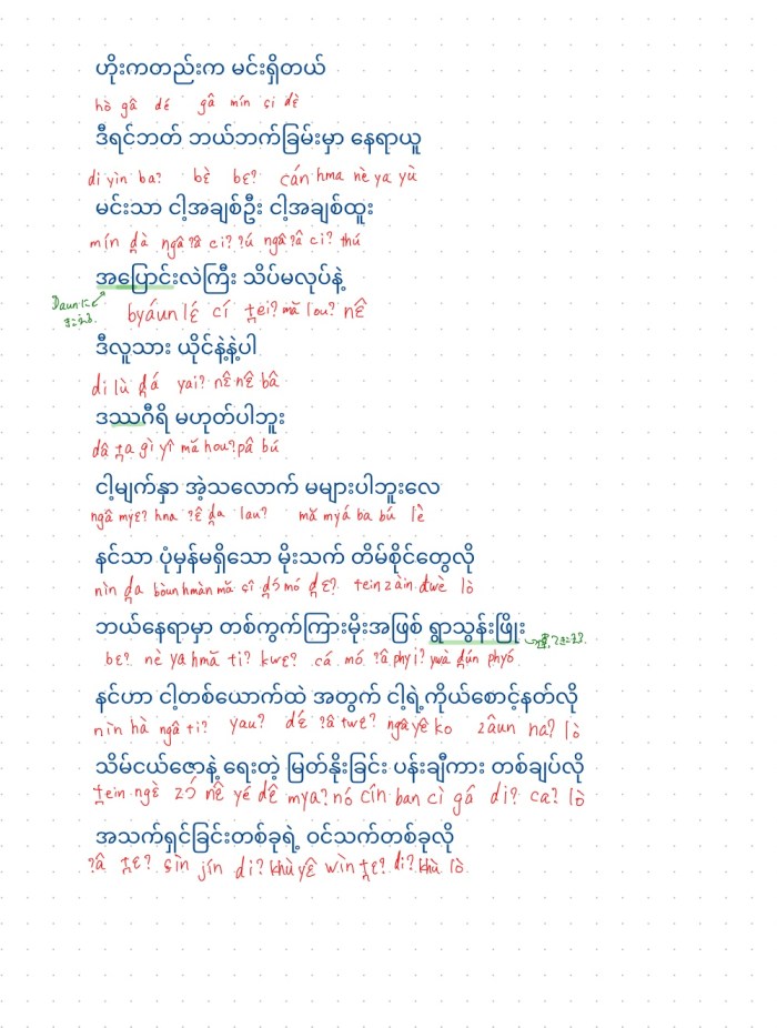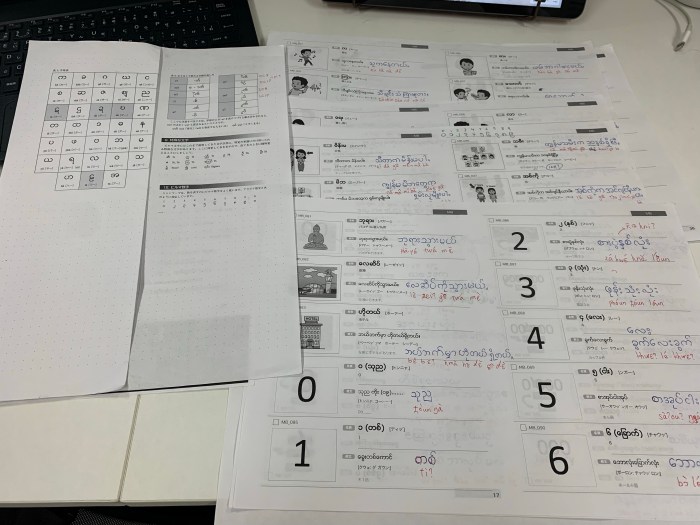 2023年12月は基本語彙300語を覚える過程で、文字と発音規則を鍛える方向で学習したいと思いますので、とりあえずミャンマー語検定協会から出ている単語集を参考に、自分でも発音記号を書いてみて、音声を聴いて確認する…という地道な作業を続けています。