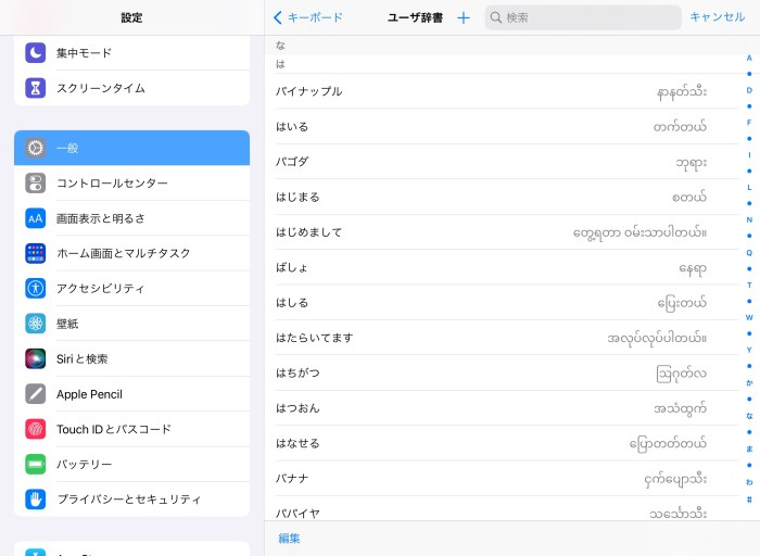 思えばもっと早くからやっておけばよかったな、と思うのですが、スマホのユーザー辞書に単語登録することで、日本語からサッと単語の確認が取れるようにしてみました。ベトナム語やタイ語は予測変換機能があったので、何となく文字列を覚えていればある程度うろ覚えでも検索をかけれたので、必要性をあまり感じてなかったのかもしれません。