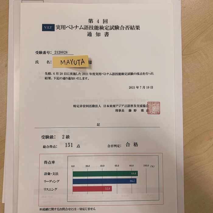 ベトナム語検定の結果は郵送でやってきますが、合格だと合格証も含めての為、封筒が巨大です。これは英検とか、他の語学試験も同じかな?と思いますが…