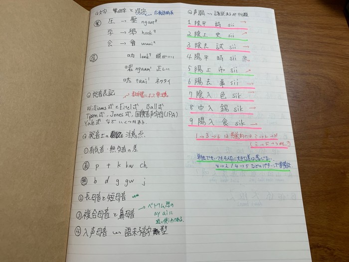 広東語の音も9声(ないし6声)の音程が固定的な方なのかな…と思い、「中音フラット」の音程の差別化が難しそうだなぁ…と思っていたのですが、実際の所、前後の音の流れに併せて高低差が分かれば、特に一定の音程におさめないといけないというものでもないのかもしれません。この辺りは、今後学習進めていくうえで、判断できるようにしたいなと思います。