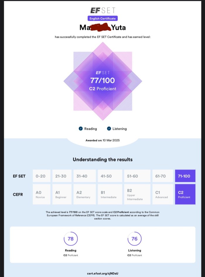 先日投稿した英語力指数を出しているサイトに無料の英語力判定試験がありましたので、15分、50分、90分の選択肢のうち、真ん中の50分のものを受けてみました。